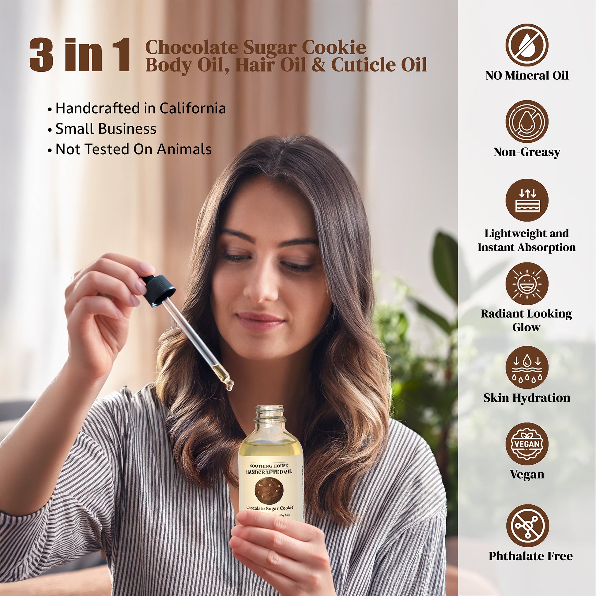 Brownie Chocolate Body Oil: A luxurious, chocolatey essence. This oil delivers a deep, rich aroma of dark cocoa and fudge, providing intense hydration and a beautifully luminous, decadent finish.