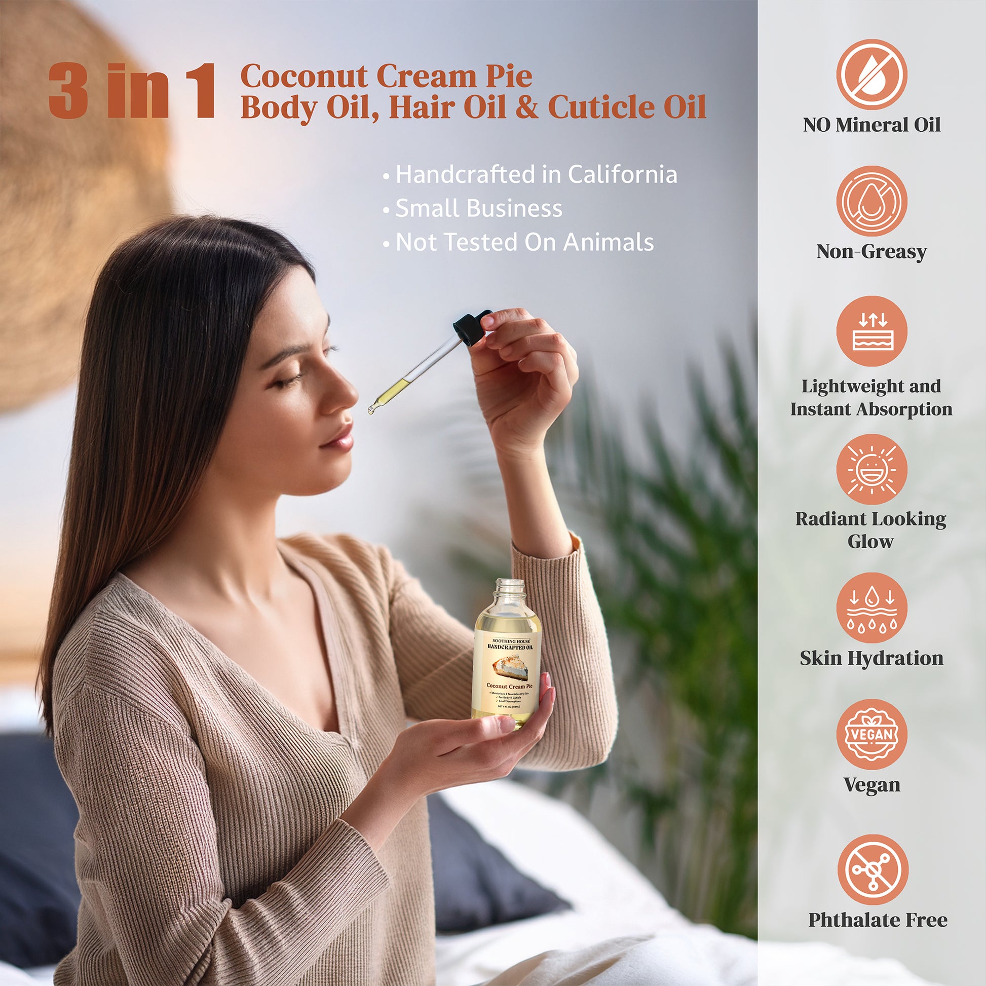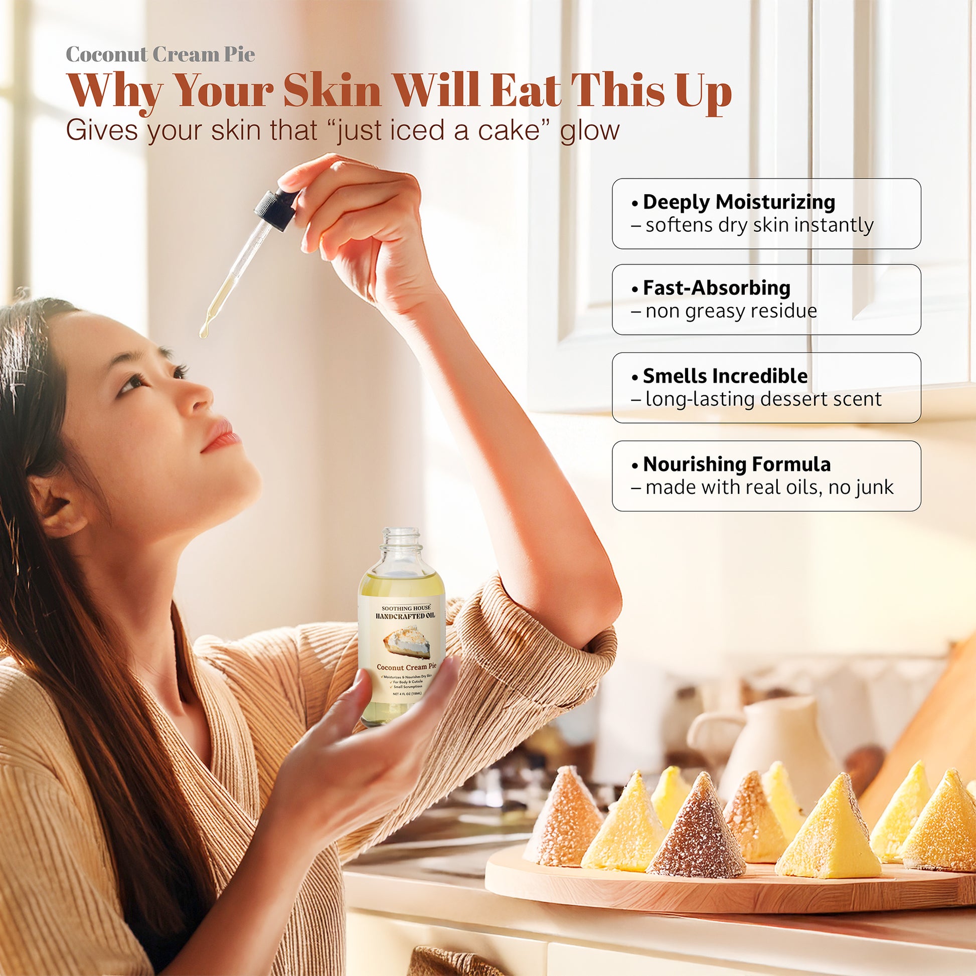 Experience the best Coconut Body Oil and get a "Skincare that Smells like Dessert" feeling. Vegan, phthalate-free, and handmade in California.
