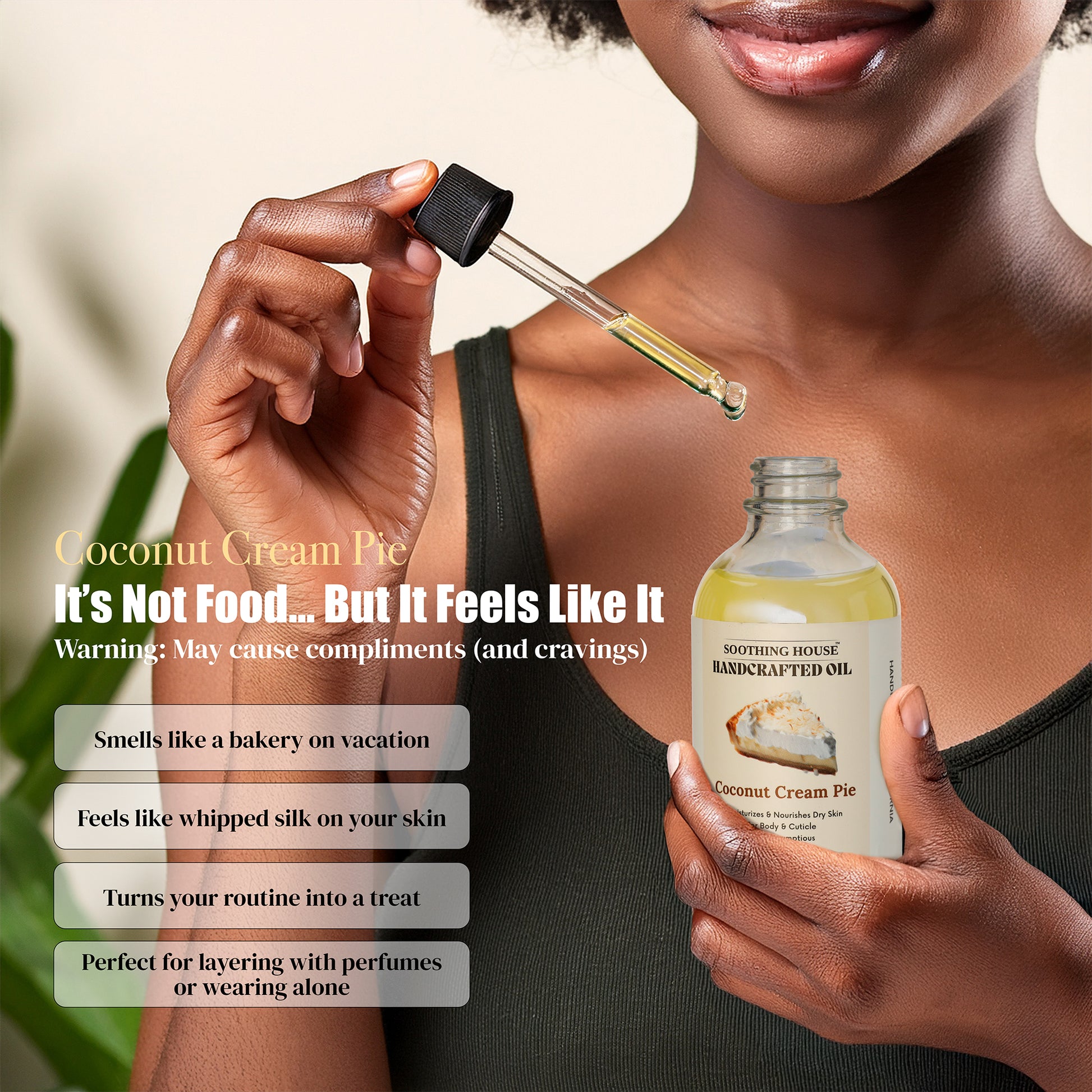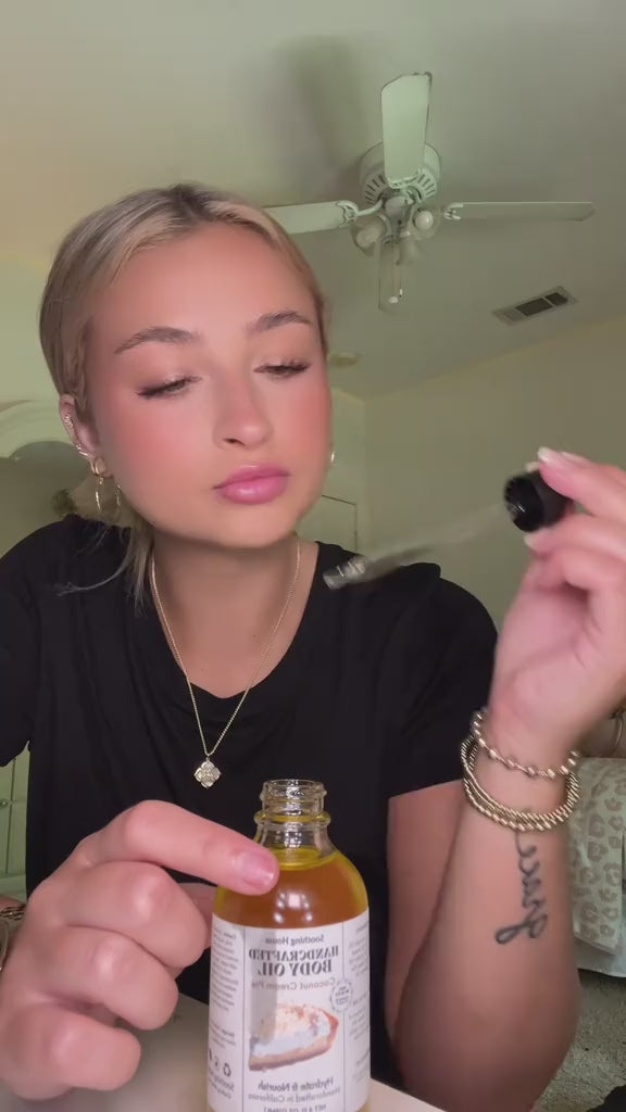 Get ready for "Skin that Smells Like a Vacation" with Coconut Cream Pie Body Oil. This handcrafted, 3-in-1 formula for body, hair, and cuticles is designed for ultra-light, non-greasy hydration.